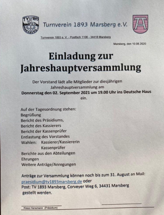 Einladung JHV